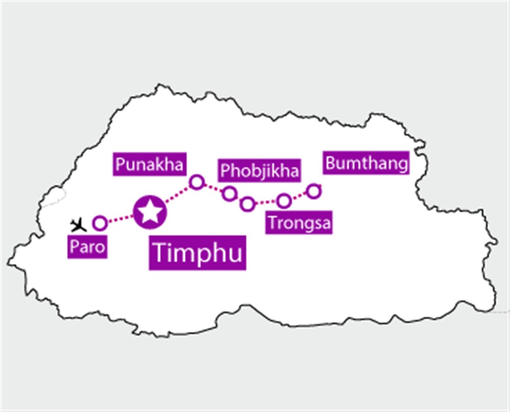 Navštívíte Kurje Lhakhang, kde světec Padmasambhava přemohl démona a nechal jeho tělo otisknout ve skále. Prohlédnete si chrám Jambey Lhakhang ze 7. století, Tamshing Lhakhang, kde se nacházejí jedny z nejstarších nástěnných maleb v Bhútánu a Jakar Dzong - administrativní centrum celého regionu. Odpoledne se projděte se po vesnici, navštivte malé řemeslné obchody, ochutnejte lokální kuchyni a poznejte naprosto jiný rytmus života, který ani dnes již není v Asii obvyklý.