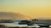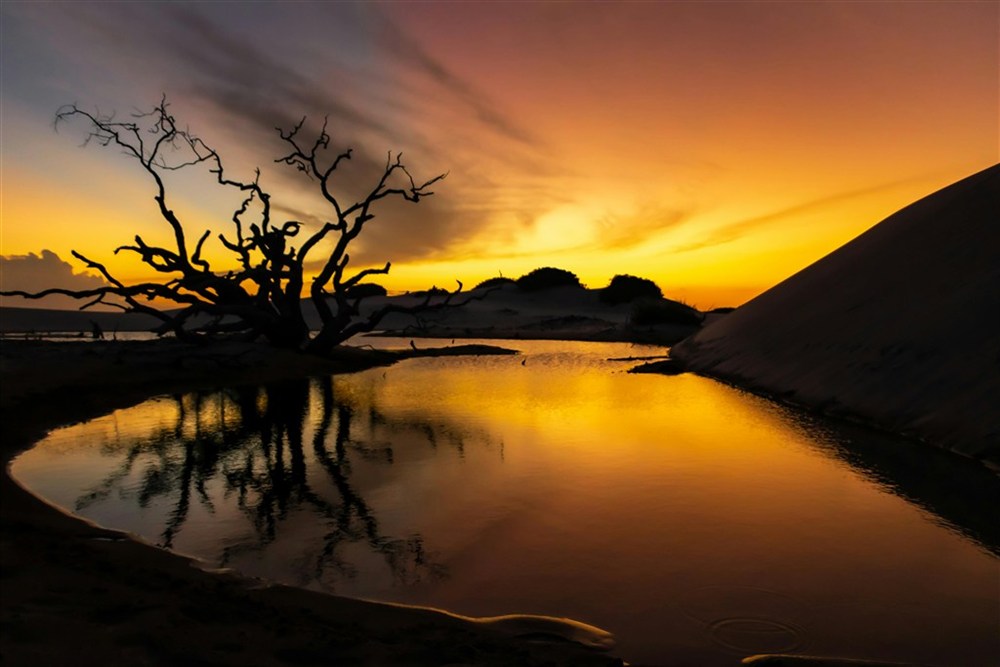 Silnice sem nevedou – jen řeka Preguiças, která vás vezme mezi mangrovníky, kde to voní solí a zelení. V malé vesnici se zastavíte na čerstvé krevety, které místní loví stejně jako před staletími. A pak už jen dál, dál mezi duny, kam se auta nedostanou a kde se cesty kreslí jen stopami větru.
