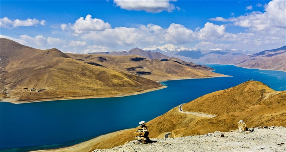 Po snídani se vydáte soukromým vozem do centrální části Tibetu. První zastávkou je jezero Yamdrok, které se mezi horami třpytí jako modrý safír. Poté pokračujete k ledovci Karola, jehož bělavé tělo osvětlené sluncem působí doslova magicky. Krátkou zastávku si uděláte i u přehrady Manla, odkud je krásný výhled na smaragdově zelenou hladinu obklopenou horami.