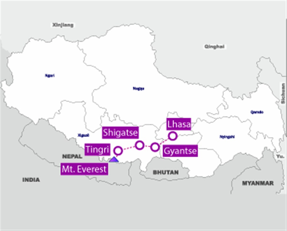 Po snídani začíná vaše cesta do vysokohorských oblastí směrem k nejvyšší hoře světa. Nejprve pojedete cca 150 km do města Lhatse, kde si můžete dát oběd (vlastní náklady). Dále budete pokračovat přes průsmyky Tsola (4 600 m) a Gyatsola (5 248 m) do oblasti Tingri.