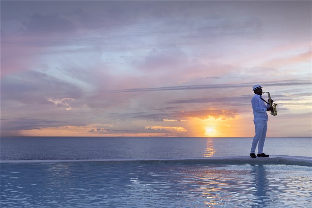 Front Ocean View Room (38 m²) – pokoje v přední části resortu s přímým výhledem na Karibik a romantickým západem slunce z terasy.
