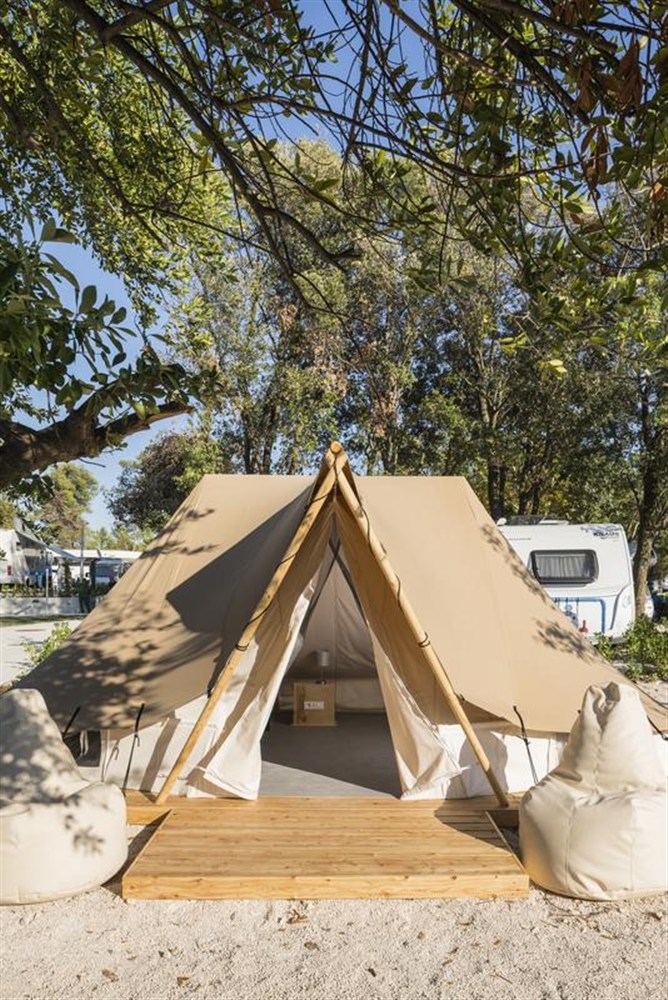 Prémiový kemp s 86 mobilními domy různých kategorií a s glampingovými stany. V areálu je restaurace, bar, obchody, pekárna, market, fast foody, venkovní bazén, dětský bazén se skluzavkami a vodními prvky a wellness (viz popis níže). WiFi připojení je k dispozici zdarma.