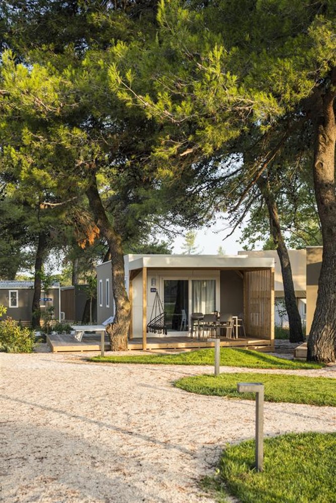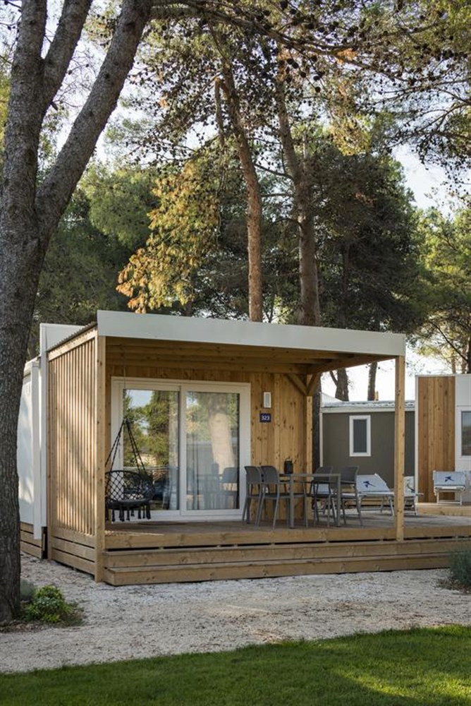 - Mobilní domy Family Home+: cca 45 m2, pro max. 7 osob. 3 ložnice, 3 koupelny, plně vybavená kuchyň, TV, zahrada a terasa s přístřeškem.