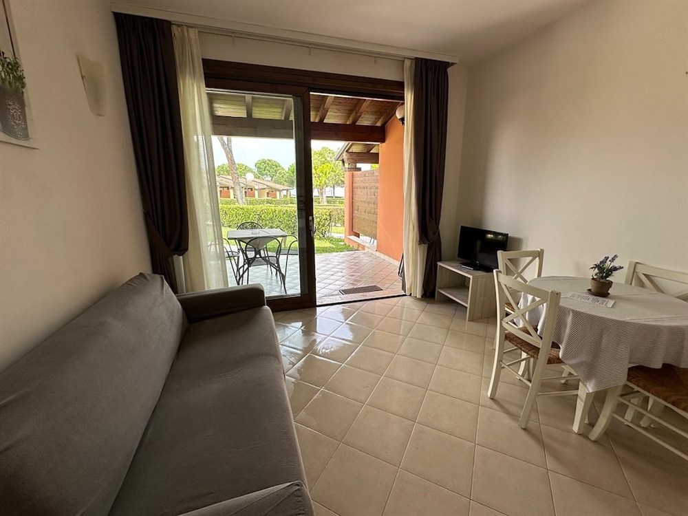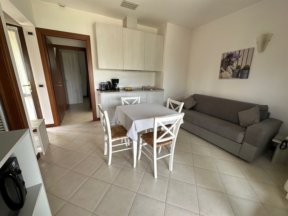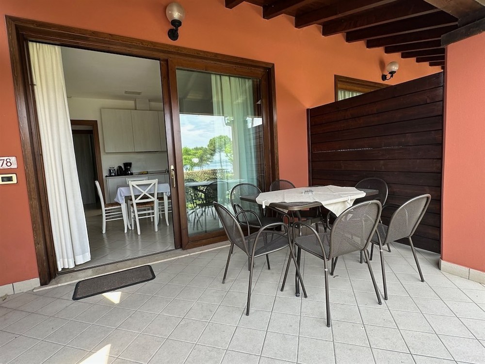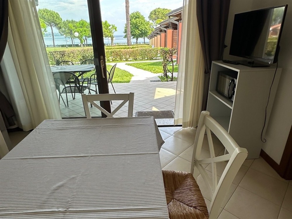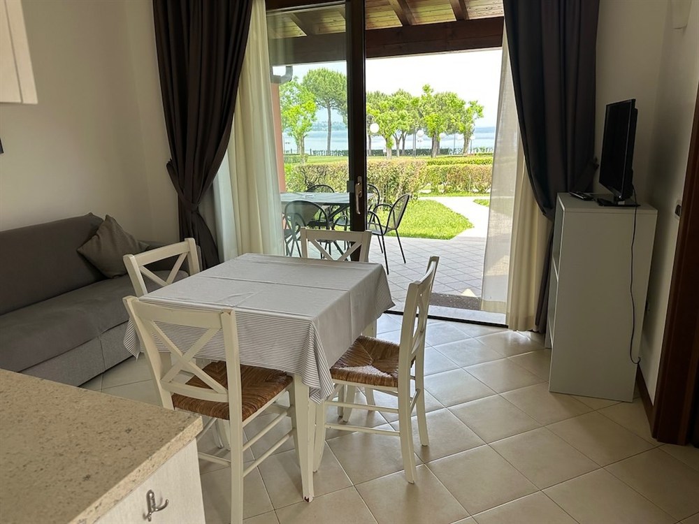 Všechny moderně zařízené apartmány se nacházejí v přízemí a mají výhled na jezero. Každý apartmán má kuchyňský kout (elektrický sporák, lednice), jídelní kout, elektrický kávovar Braun s filtrem, toustovač a varnou konvici. Dále je k dispozici trezor, sat. TV, topení/klimatizace, koupelna se sprchou a WC, bidet, fén, krytá zařízená terasa (stůl, židle, lehátka a věšák na oblečení) a soukromá zahrada. Na vyžádání je zdarma k dispozici: italský kávovar (= Moka) a mikrovlnná trouba: