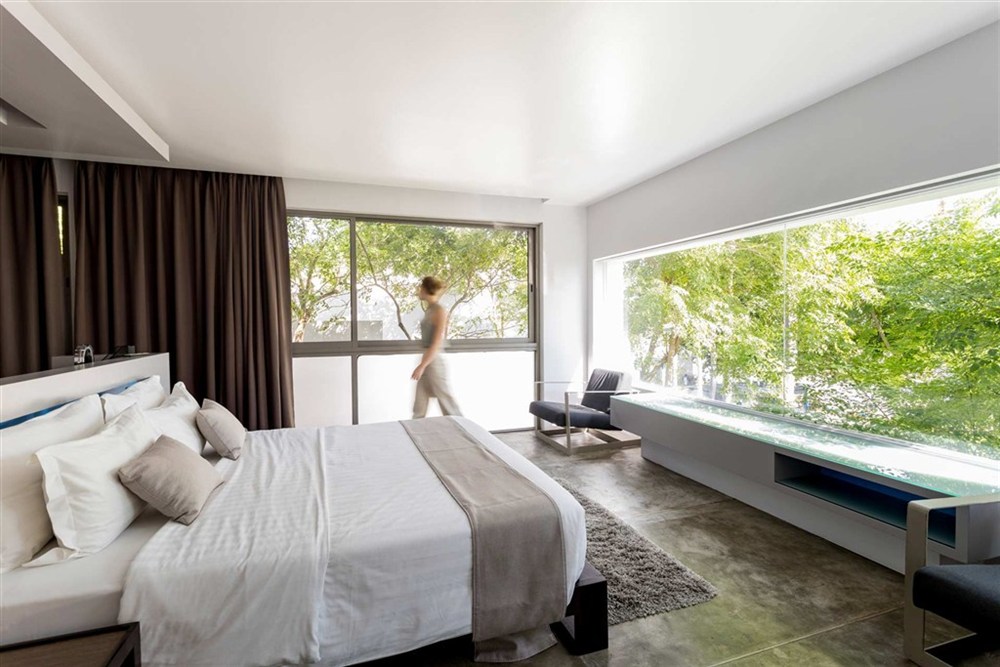 Resort nabízí moderně zařízené pokoje v minimalistickém stylu s důrazem na komfort, světlý interiér a funkční uspořádání prostoru.