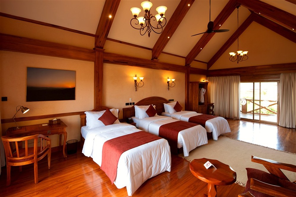 Lodge nabízí přibližně 22 komfortních pokojů a suite, všechny orientované směrem ke kráteru.Každý pokoj nabízí:vlastní koupelnu (vana nebo sprcha)krb pro chladnější večeryprostornou ložnici s možností double nebo twinprivátní balkon či velká panoramatická oknaelegantní interiér kombinující moderní komfort a safari stylUbytování je navrženo tak, aby maximálně využívalo jedinečnou polohu lodge – výhled do kráteru je součástí každého pobytu.Zázemí a služby