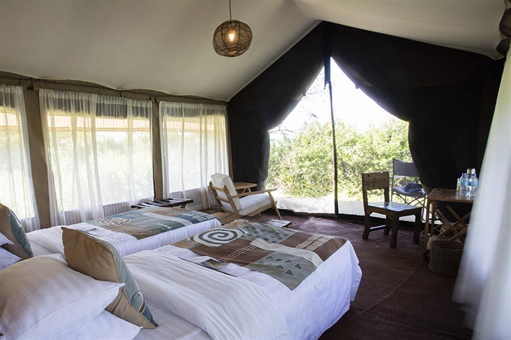 Interiér je laděn do autentického safari stylu s prvky lokálního designu, nábytek je vyráběn místními řemeslníky v Arushi.