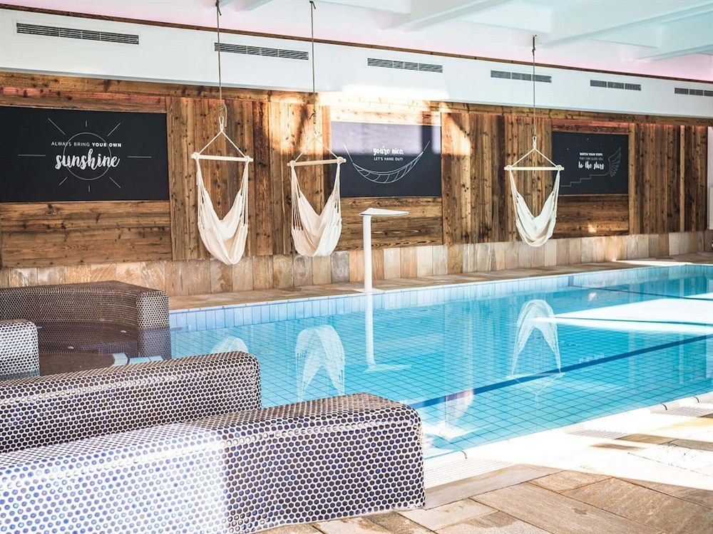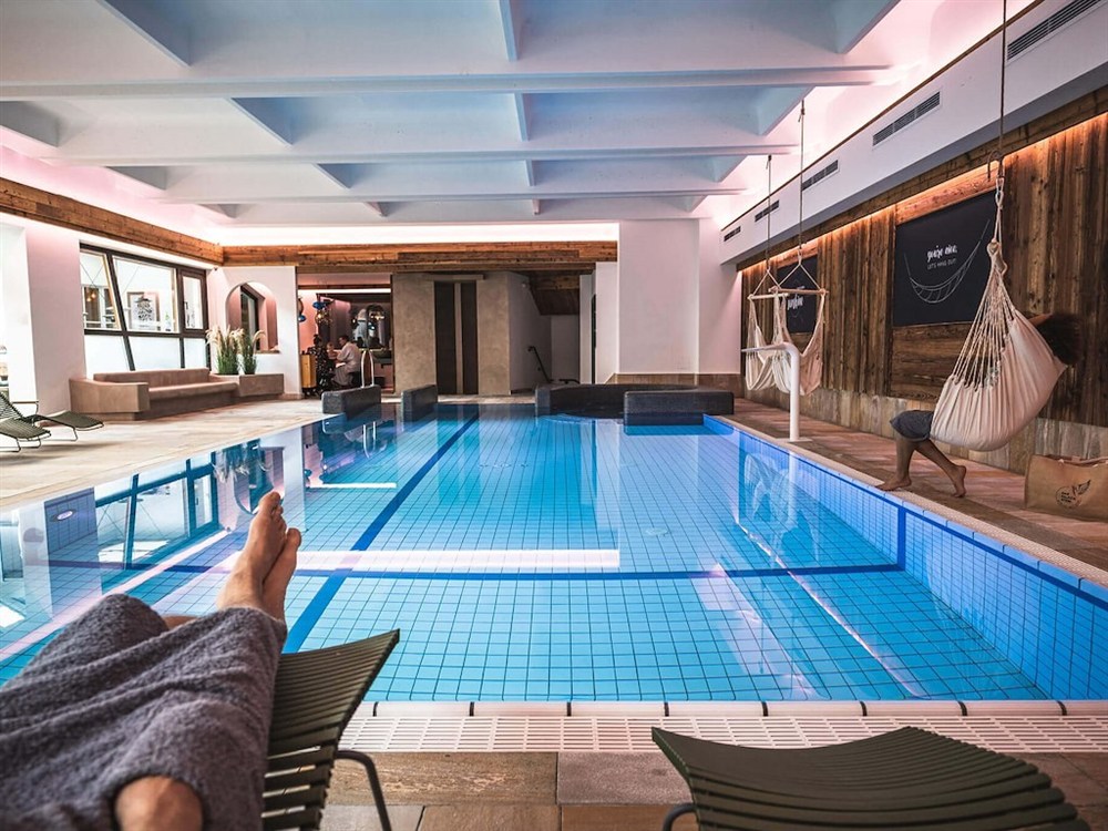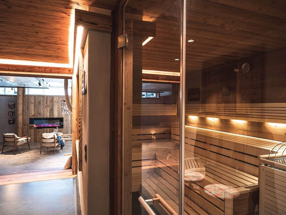 wellness zóna s rozlohou cca 1000 m2: krytý bazén s vířivkou/vířivými tryskami a protiprodem (12 x 6 m, 8-20 h.). Relaxační zóna (od 15 let, 14-20 h.): bylinná sauna, parní lázeň, další typy saun, vodní lůžka. Možnost koupání (schlazení) ve studené vodě v přírodním biotopu. Fitness (7-22 h.). Za poplatek: masáže.