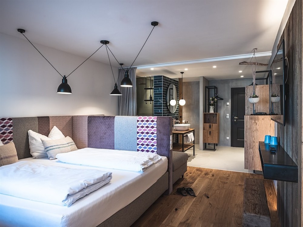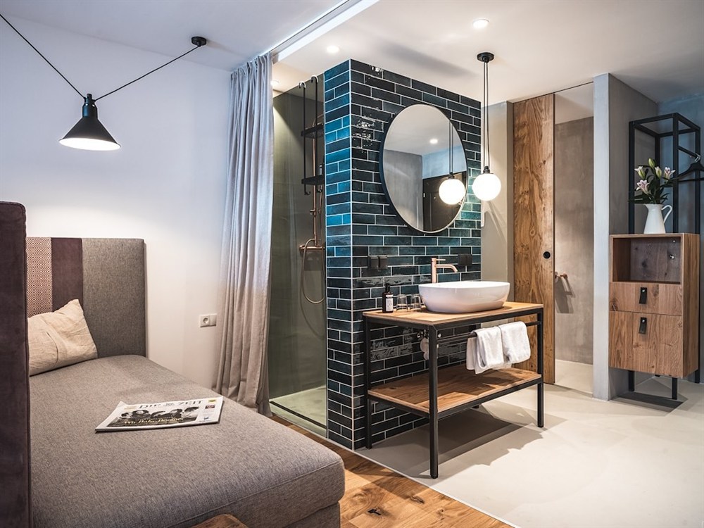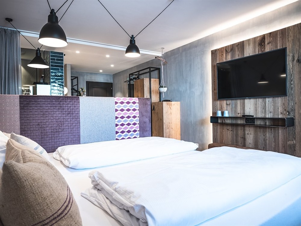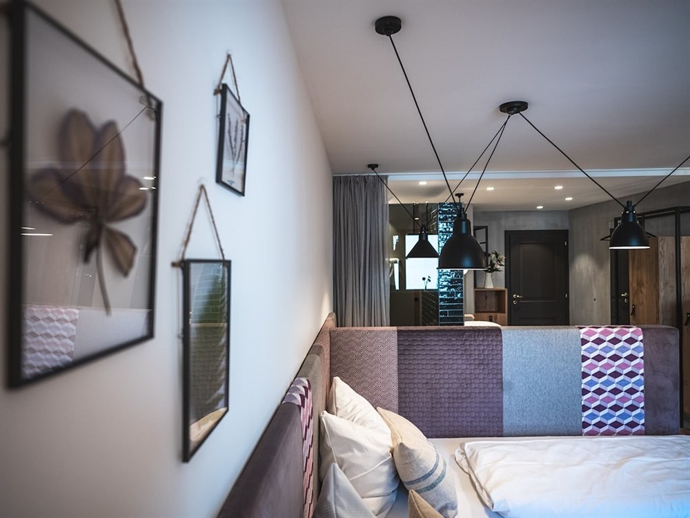 - Studio Kitz: cca 32 m2, pro 2-3 os., Kingsize postel 2x2 m, pohovka nebo přistýlka na spaní, otevřená koupelna se sprchou, balkon.