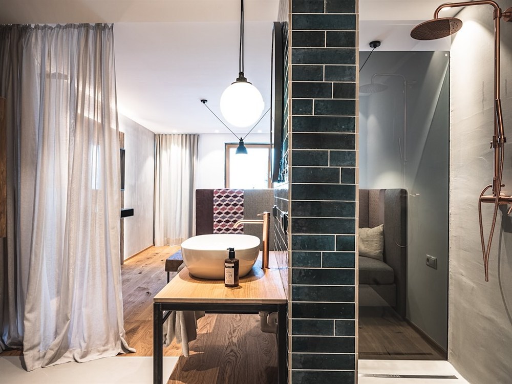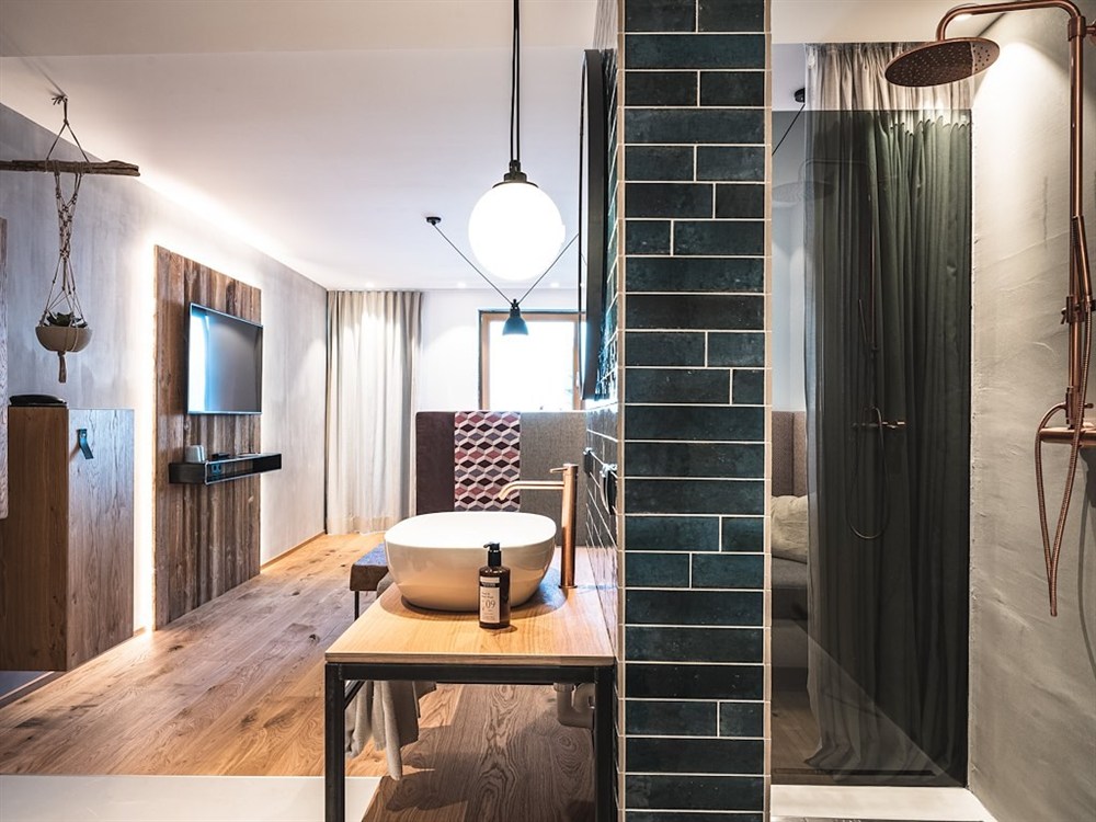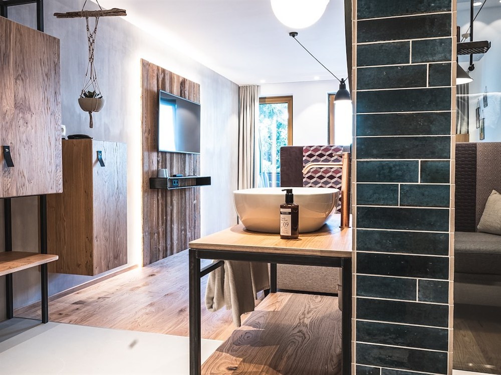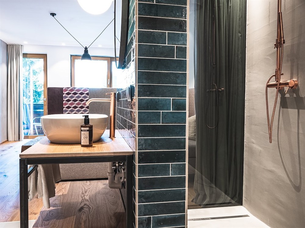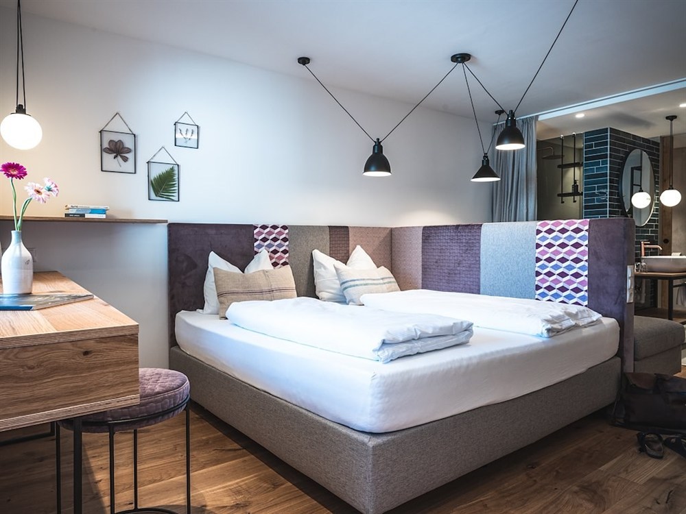 - Studio Kitz: cca 32 m2, pro 2-3 os., Kingsize postel 2x2 m, pohovka nebo přistýlka na spaní, otevřená koupelna se sprchou, balkon.