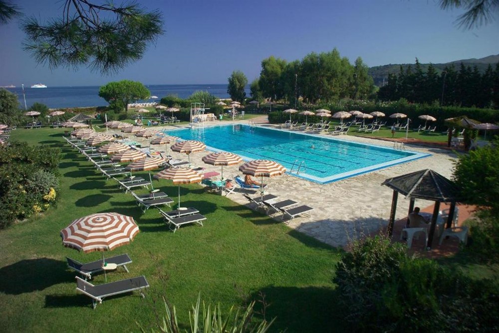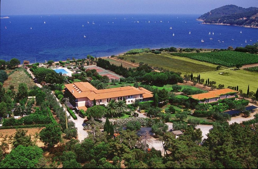 Hotel je obklopen starým olivovým hájem v chráněné oblasti s výhledem na moře. Centrum historického města Portoferraio je cca 10 minut jízdy autem od hotelu. Zároveň má hotel vlastní kyvadlový autobus (za poplatek). Nejbližší letiště je cca 25 km (La Pila - Marina di Campo na ostrově Elba).