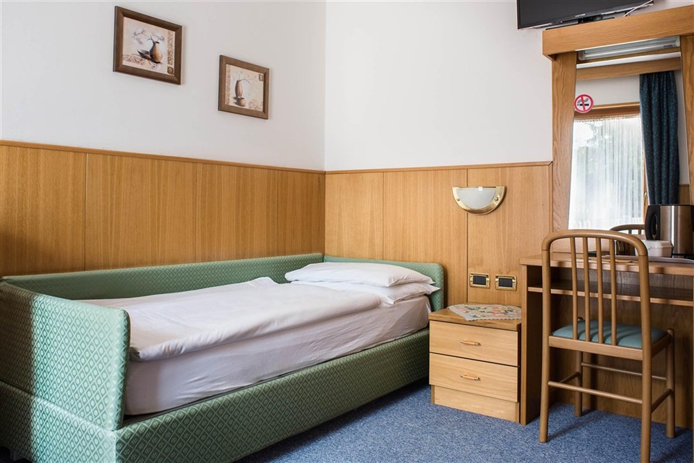 - Dvoulůžkové pokoje Standard: cca 18 m2, možnost jedné přistýlky, vlastní koupelna se sprchou a WC, fén, sat. TV, telefon, WiFi připojení a balkon.