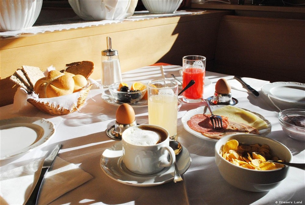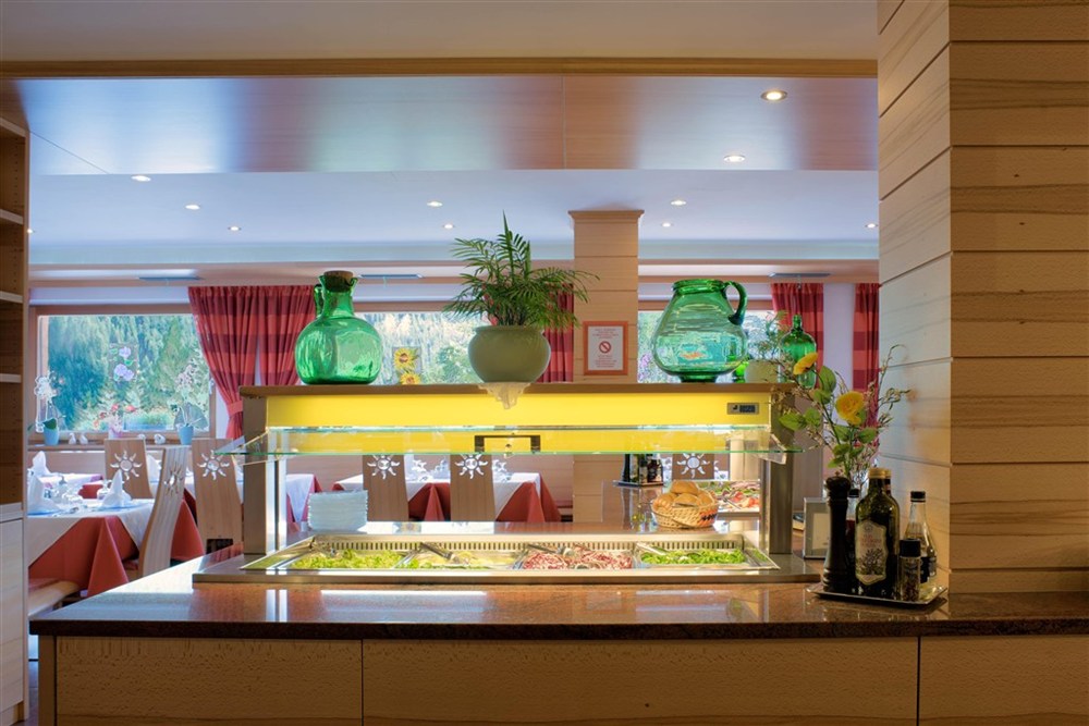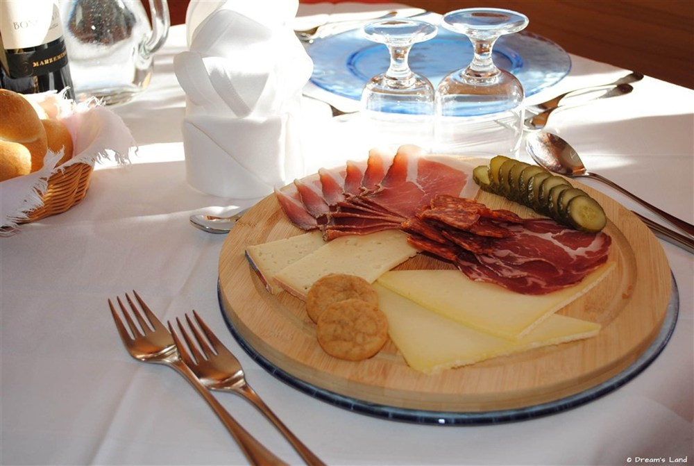 snídaně formou bufetu v čase 7:30-9:30 a večeře formou tříchodového menu se salátovým bufetem a bufetem s předkrmy v čase 18:30-20:30. Každý čtvrtek typická místní večeře a každou neděli večeře při svíčkách.