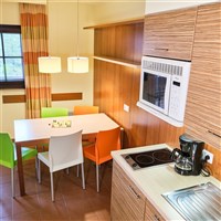 - Dvoupokojové apartmány Fichte: cca 50 m2, pro 2 dosp. a max. 3 děti do 15,99 let popř. 1-5 osob při rezervaci bez stravy, obývací část se 2 pohovkami na spaní, samostatná ložnice.