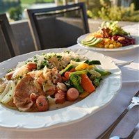 bez stravování nebo all inclusive: bohatá snídaně formou bufetu (7.30-10 h.), v poledne malý bufet (12-13 h.), odpoledne káva a zákusek (15-16.30 h.), večeře formou bufetu. 10-22 h. pivo, stolní víno, limonády, džusy, minerální voda v restauraci Berghaus. Při vyprodaném hotelu jsou 2 časy pro stravování. Jizba See-Stüberl a koktejlový bar nejsou součástí all inclusive.
