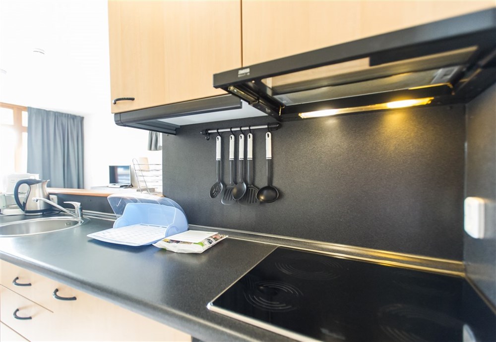 Ve všech apartmánech je kuchyně s následujícím vybavením: lednička, myčka nádobí, elektrická varná deska (4 plotýnky), elektrická trouba, mikrovlnná trouba, kávovar, rychlovarná konvice. V obývacích místnostech všech jednotek je LCD TV a DVD přehrávač.