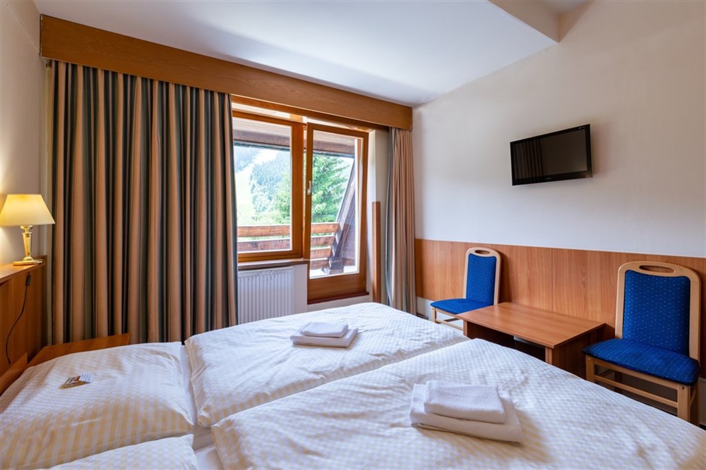 - Dvoulůžkové pokoje s balkonem: cca 20 m2, manželské dvoulůžko + balkon s výhledem na hory.