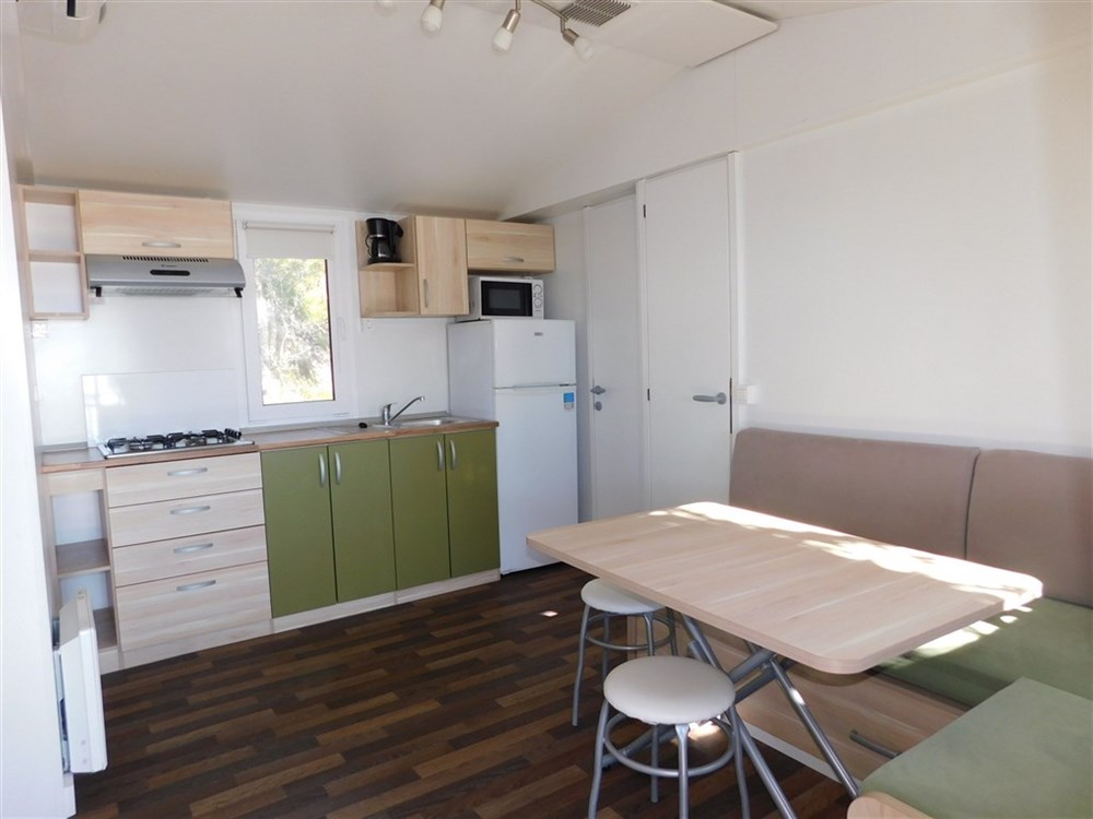 Mobilní domy/bungalovy jsou vybaveny terasou, kuchyňským koutem (chladnička, sporák), jídelním koutem, sat. TV, WiFi připojením zdarma, topením, klimatizací, sprchou a WC.