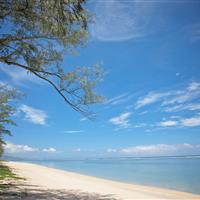- Malebná bílá pláž lemovaná tyrkysovou korálovou lagunou.