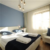 - Dvoulůžkový pokoj s přistýlkami: cca 35 m2, strana k jezeru, dvoulůžková postel a rozkládací pohovka pro 2 os., balkon.