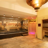 wellness zóna s krytým bazénem (12 x 12 m), sauna, parní lázeň, biosauna, finská sauna, bylinná parní lázeň, turecká parní lázeň, infrakabina, odpočívárny, fitness. Za poplatek: masáže, solárium, koupele.