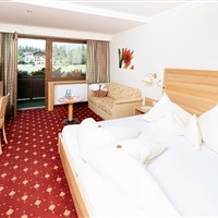 - Komfortní pokoje Bergzauber: cca 28 m2, pro 2 dosp. + 1-2 děti do 17,99 let (pohovka na spaní). Balkon.