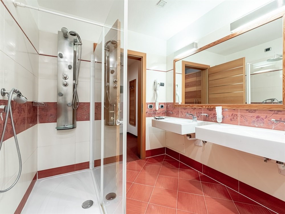 - Dvoulůžkové pokoje Prestige: cca 20 m2, možnost 2 přistýlek formou francouzské postele (1,30 x 1,90 m) nebo palandy. Navíc vířivá vana nebo masážní sprcha.