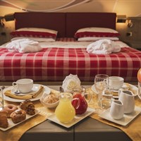 snídaně formou bufetu, večeře formou tříchodového menu se salátovým bufetem a bufetem s předkrmy. Vánoční a silvestrovské menu v daných termínech v ceně.