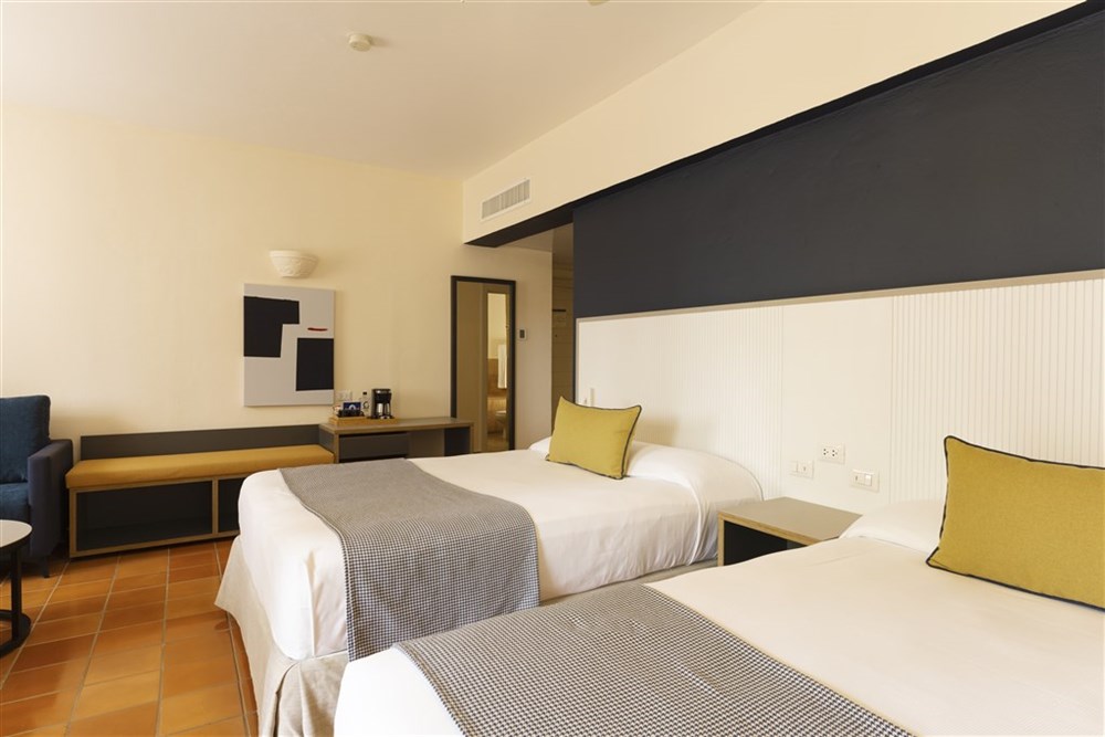 Privileged Family Deluxe (50 m²) – prostorný pokoj se dvěma manželskými postelemi queen size, dětskými výhodami a přístupem do rodinné zóny a Kids Clubu.
