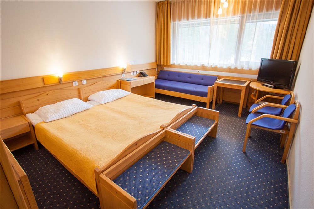 - Dvoulůžkový pokoj s přistýlkou - výhled k lesu/výhled k horám: dvoulůžková poslel a pohovka, která je vhodná i pro dosp.