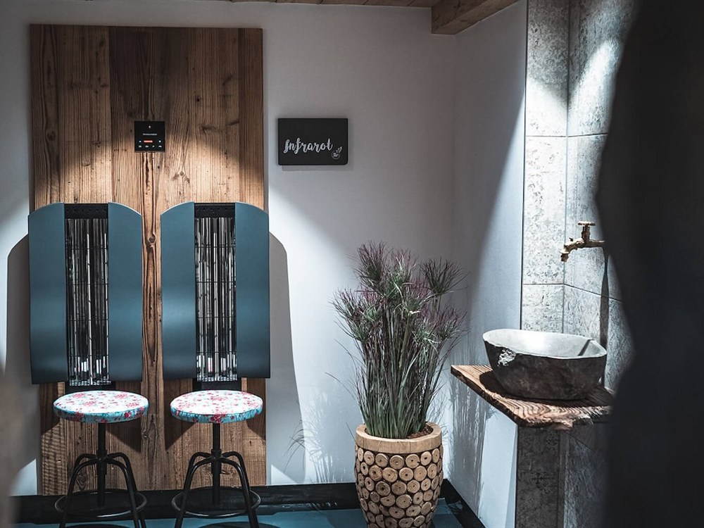 wellness zóna s rozlohou cca 1000 m2: krytý bazén s vířivkou/vířivými tryskami a protiprodem (12 x 6 m, 7.30-21 h.). Relaxační zóna (od 15 let, 14-21 h.): bylinná sauna, parní lázeň, další typy saun, vodní lůžka. Fitness (7-22 h.). Za poplatek: masáže.