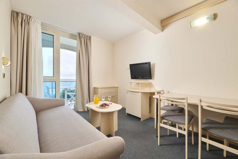 - Suite: cca 28 m2, ložnice a obývací pokoj, možnost jedné přistýlky i pro dospělou osobu, navíc balkon (lze vybrat s výhledem na moře nebo bez).