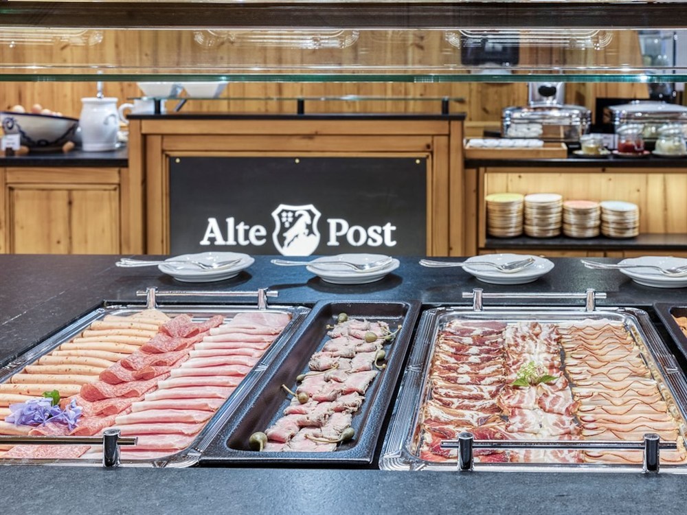 - Suite Alte Post: cca 98 m2, pro 3-4 os., obývací ložnice s rozkládací pohovkou, jídelní stůl a kamna, samostatný dvoulůžkový pokoj, 2x TV, balkon nebo terasa.
