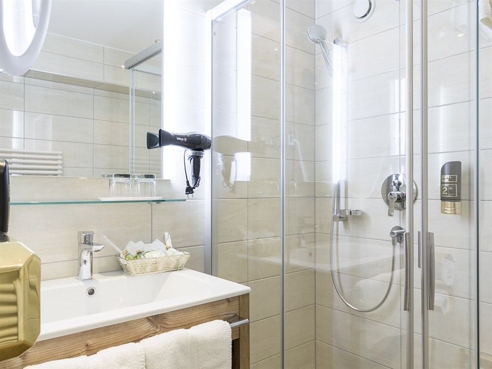 pokoje jsou vybaveny vanou nebo sprchou, samostatným WC, telefonem, sat. TV, pokojovým trezorem, minibarem (za poplatek), posezením, fénem, WiFi připojením, župany k zapůjčení pro dospělé i děti.