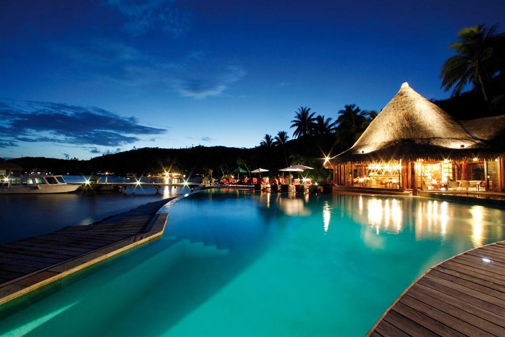 Velký bazén s výhledem na moře, solárium. Lázně se rozprostírají přes dva Overwater Bungalovy. Nabízejí venkovní vířivou vanu Jacuzzi a 5 nádherně navržených therapy místností. Nabídkou lázní jsou jak jednotlivé příjemné masáže, tak i masáže pro páry.
