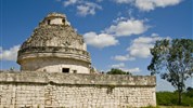Prohlídka největšího mayského naleziště Chichen Itzá. Prozatím je zrekonstruováno jen 30 budov, zatímco stovky dalších jsou stále skryté v džungli. Středu celého komplexu dominuje Kukulkanova pyramida (mayské jméno pro boha Quetzalcoatla), také se jí říká El Castillo. Stojí na vrcholku staršího chrámu a má čtyři schodiště s celkem 365 schody, jejichž počet odpovídá počtu dní v kalendáři. Poblíž El castillo je Tzompantli, terasa lemovaná lidskými lebkami vytesanými do kamene. Po nezpevněné pešině se z míčového hřiště dostaneme k přírodní cenote de los Sacrificios do něhož se svrhávaly oběti. V areálu se ještě podíváme na chrám válečníků Templo de los Guerreros a Chrám jaguárů Templo de los Jaguares či sedící sochy Chaac Moola (prostředník mezi člověkem a bohem).