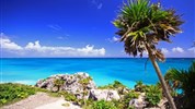 Potom se pojedeme podívat na pevnost Tulum. Starobylý mayský přístav Tulum, vystavěný na útesu mezi plážemi Karibského moře a džunglí, je jedno z nejkouzelnějších míst Yucatánu. Mayové jej založili kolem roku 433n.l. a uctívali zde boha Kukulkána a nejdůležitější mayskou planetu, Venuši (Xux ek - “hvězda včela”). Chrámy zasvěcené kultu opeřeného hada boha Kukulkána tvoří majestátní celek obehnaný mohutnými hradbami. Největšími dominantami korálového útesu jsou “Hrad” (El Castillo), který sloužil mimo jiné jako maják, Chrám sestupujícího boha, Chrám Fresek s dochovalými malbami, Dům Sloupů, Dům cenotu nebo Chrám větru, který sloužil k náboženským obřadům až do roku 1924. Tulum je vystavěný na břehu moře a kamenné schody z útesu vedou přímo na pláž Boca Pela. Romantické útesy ale skrývají další malebné plážičky s bílým pískem a korály. Můžete šnorchlovat, plavat a užívat si naprosto klidné přírodní prostředí.