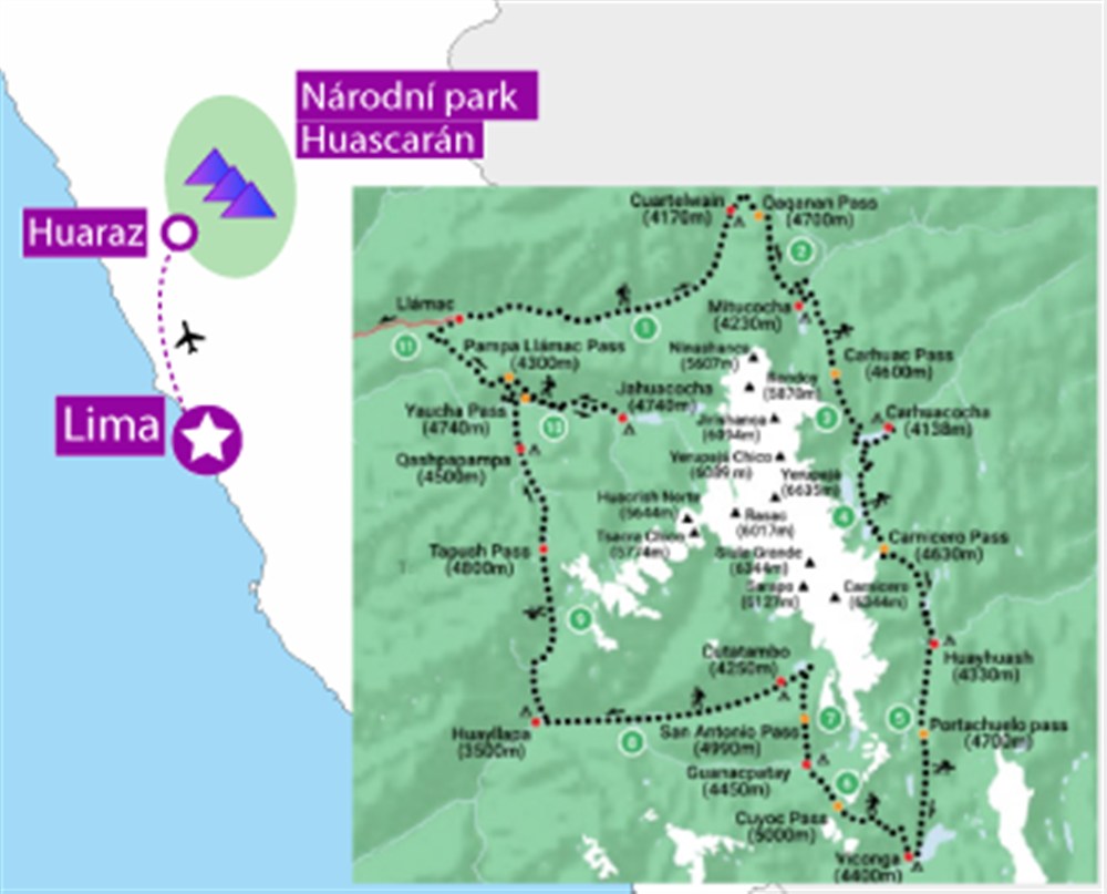 - Nutná dobrá aklimatizace, ideálně předchozí pobyt ve výškách (Cusco, Huaraz, Cordillera Blanca)
