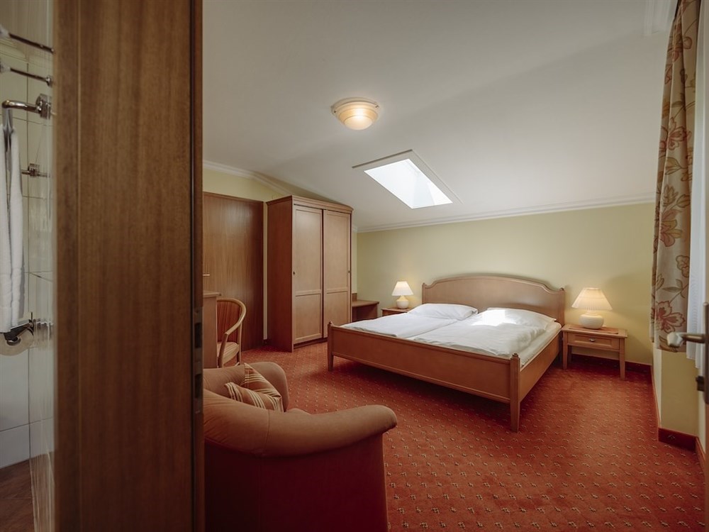 - Jednolůžkový pokoj typ Retro: cca 15 m2, sprcha, posezení, navíc balkon.