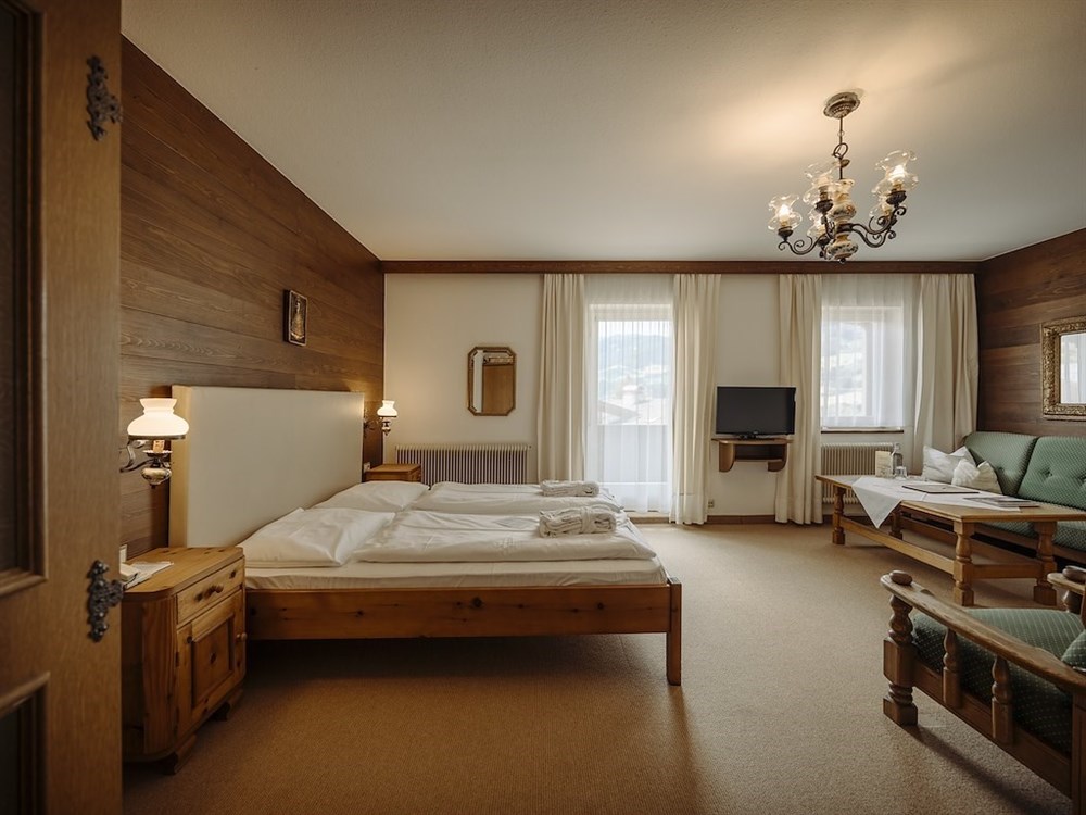 - Dvoupokojový rodinný pokoj Retro: cca 40 m2, pro 2 dosp. + 1-2 děti do 16,99 let, obývací ložnice s propojovacími dveřmi, rozkládací pohovka, samostatná ložnice, min. obsazenost pokoje jsou 3 osoby, pokoj je bez balkonu.