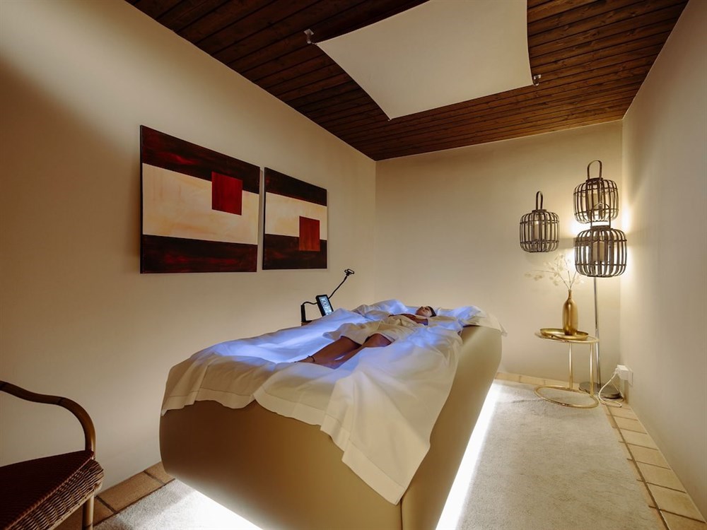 wellness zóna s krytým bazénem (10 x 5 m, 28°C) s otevřeným přístupem na louku, odpočívárny (7-22 h.), finská sauna, sanarium, infrakabina (15-19 h.). Za poplatek: masáže a terapie/procedury Zerobody (simulace stavu beztíže pomocí speciální vodní postele).