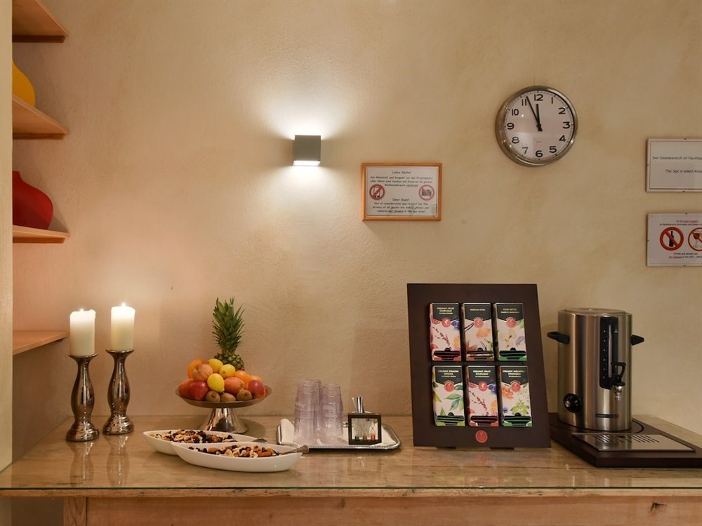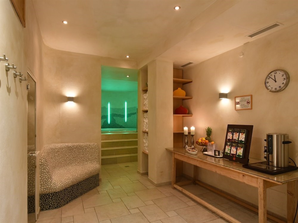 wellness zóna City-SPA s finskou saunou, biosaunou, tureckou parní lázní, vířivkou, zážitkové sprchy. Župany pro dosp. k zapůjčení na recepci za poplatek (5 € os./den + kauce 20 €/os.)