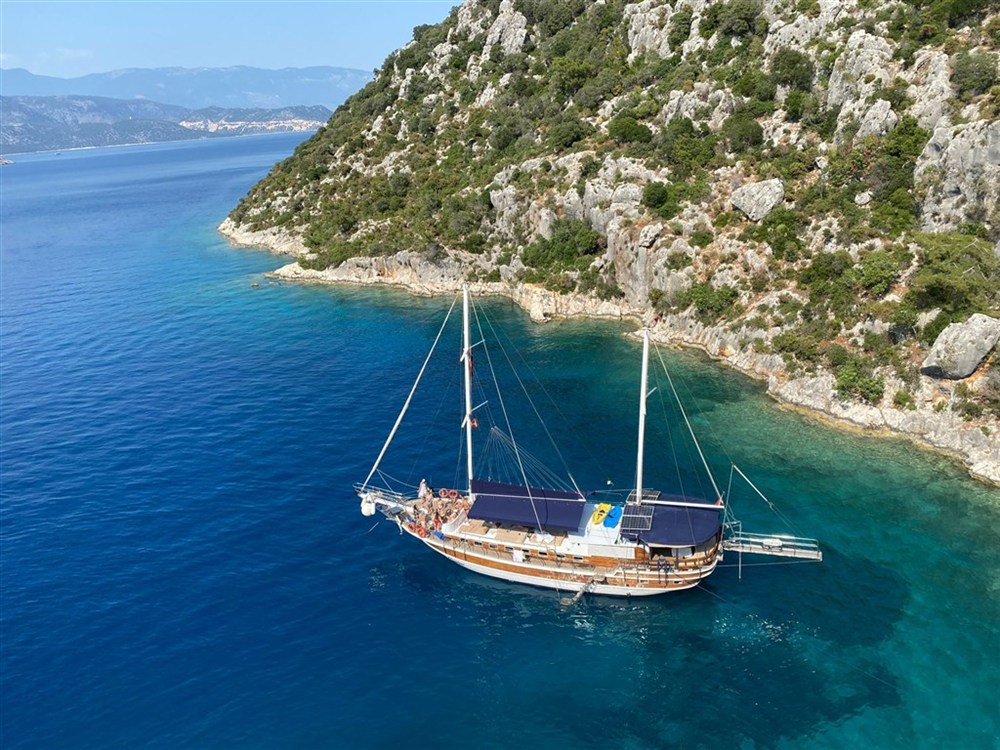 Blue Voyage: dvoudenní plavba na guletu u Kaşe (plná penze) Skryté zátoky, koupání, noc na moři a egejská kuchyně na palubě – velké finále celého okruhu.